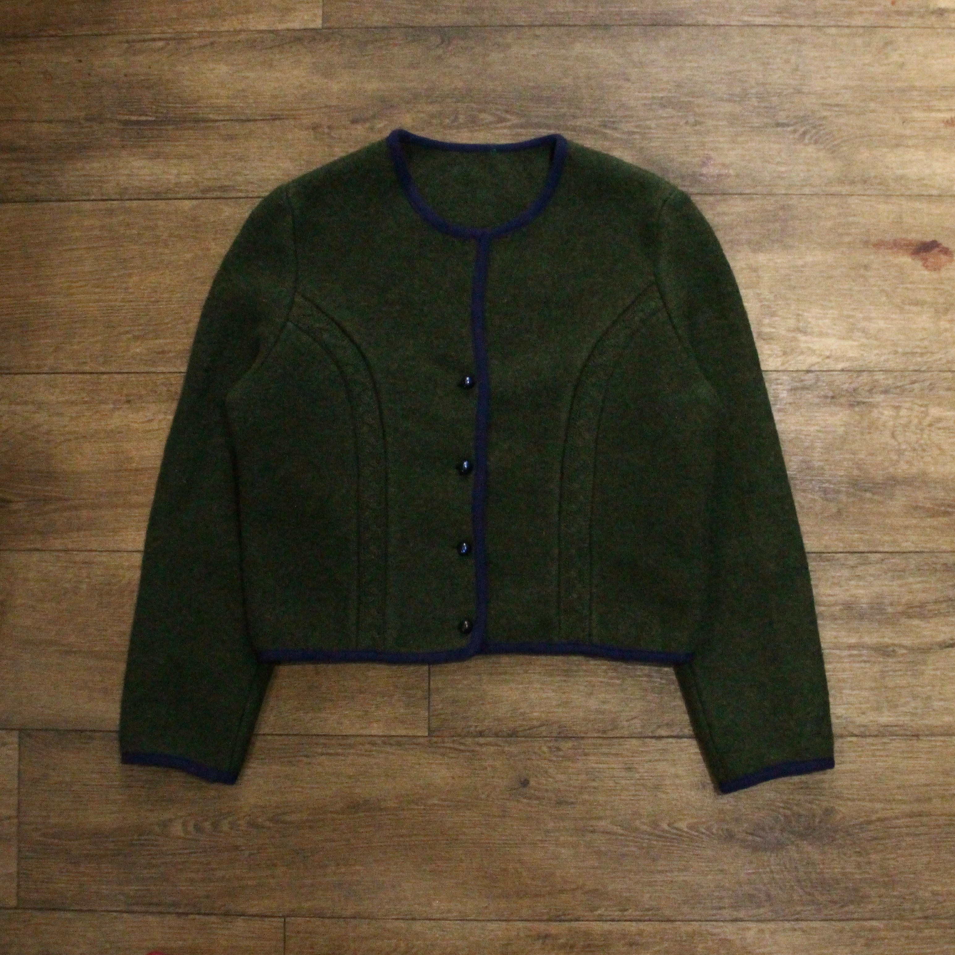 Short Length Olive Wool Piped Jacket